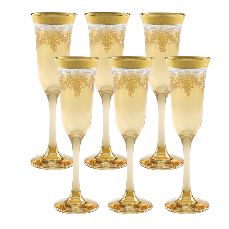 Amber Flutes Set of 6 with Gold Band